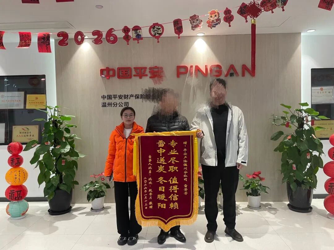 近日,温州分公司理赔团队收到一面锦旗,上面绣着“专业尽职,值得信赖,雪中送炭,冬日暖阳”。这源自一起理赔案件:团队全程协助客户收集材料、加快审核流程,最终及时完成12万元的意外险赔付。